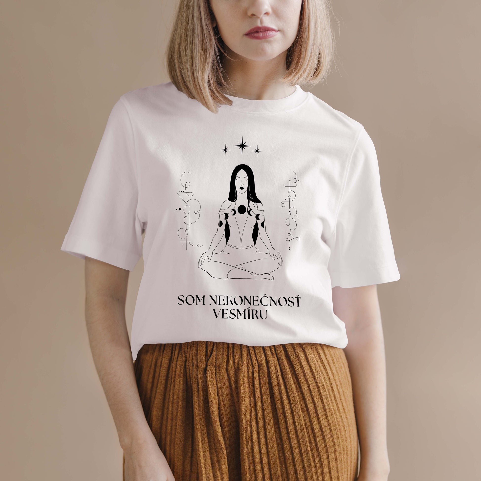 Tričko Som nekonečnosť vesmíru so svetelným kódom ukotvujúcim zámer. Som multidimenzionálna bytosť, ktorá v ľudskej bodobe zbiera fragmenty svojej duše, energia ku mne prúdi a všetko prichádza v pravý čas.